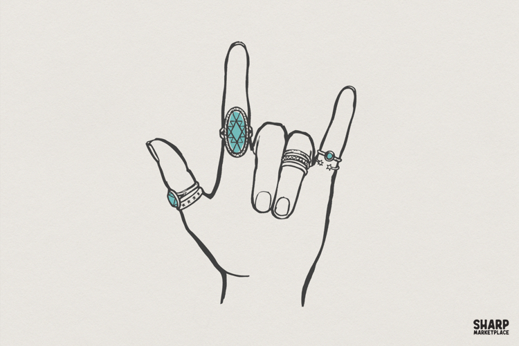 I Love You PNG Hand Sign, Boho Rings, ASL Digital Download, Bohemian Jewelry Clipart, Minimalist Line Art, Printable Art, PNG Artwork