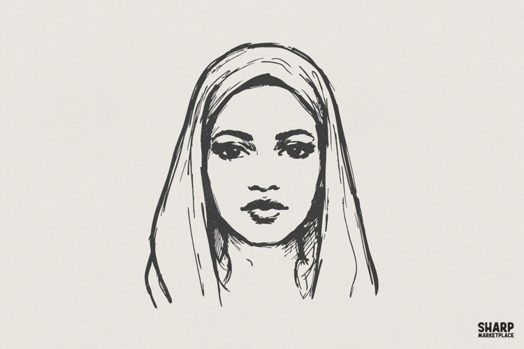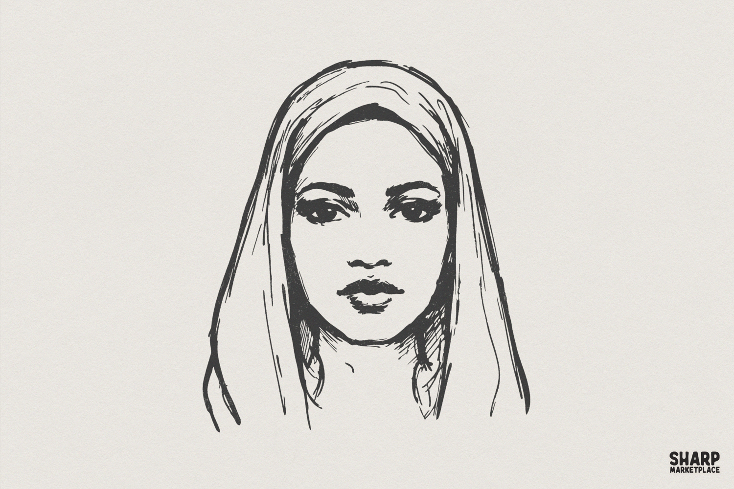Woman Face PNG, Hand Drawn Digital Portrait, Black Line example image 1