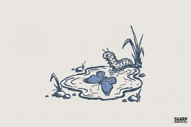 Caterpillar and Butterfly PNG, Transformation Art Print,
