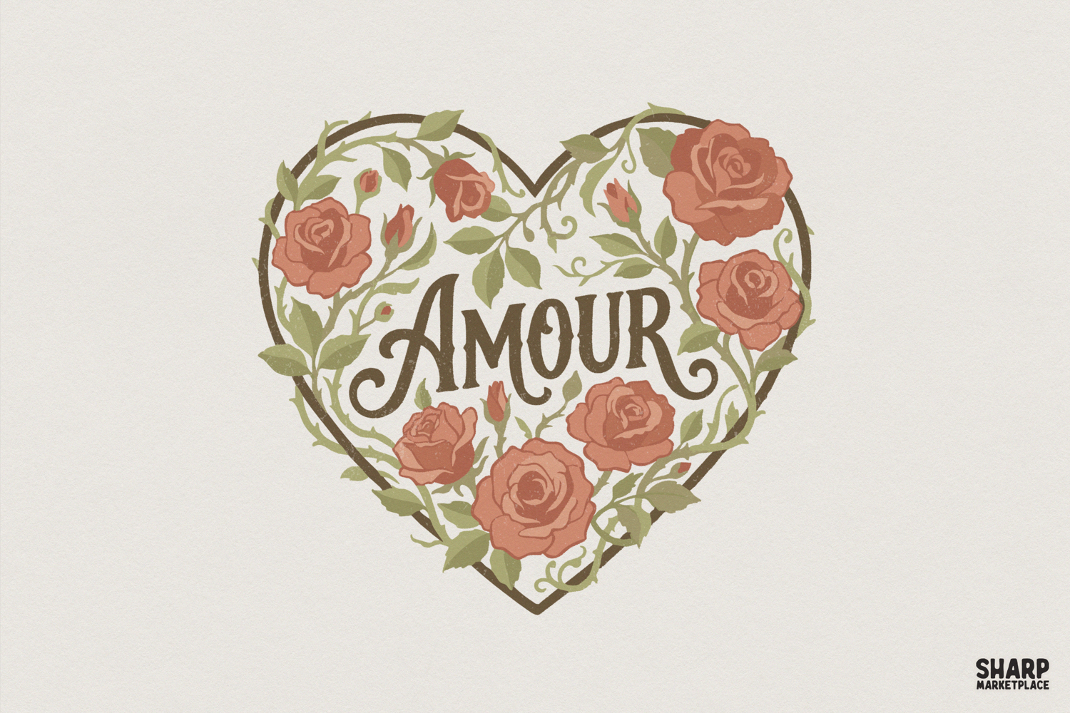Amour PNG Rose Heart, Romantic Floral Printable, Vintage Flower Design, Love Wall Art PNG, Valentine Shirt, Botanical Amour Gift Idea