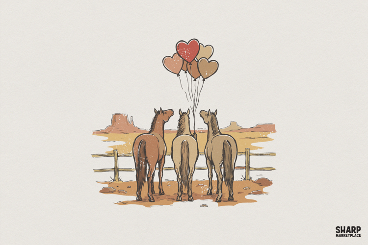 Similar Design Products to Western Horses With Heart Balloons PNG, Cute Cowboy Decor,