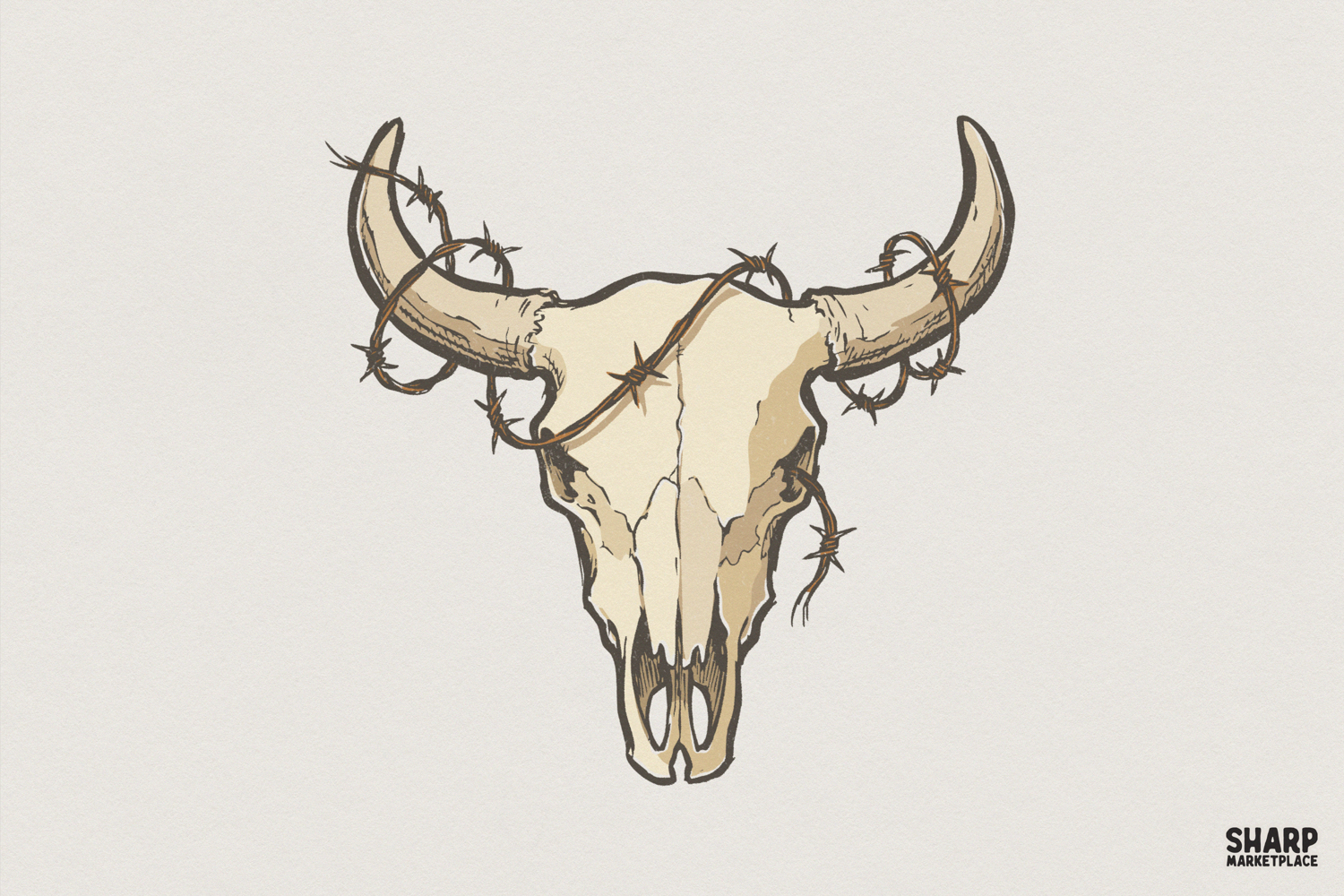 Similar Design Products to Cow Skull PNG, Western Barbed Wire Skull Clipart, Rustic