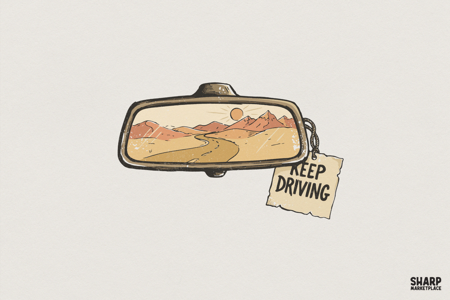 Keep Driving PNG, Vintage Desert Road Art, Rearview Mirror