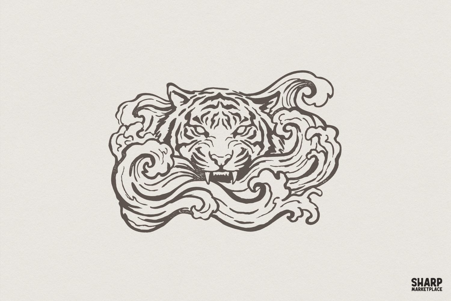 Similar Design Products to Tiger Head PNG, Fierce Animal Art, Japanese Wave Tattoo