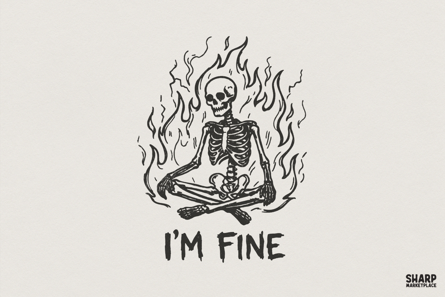I'm Fine Skeleton PNG, Funny Skeleton Flames Digital Download, Dark Humor Tee, Sarcastic Shirt Design, Printable PNG Art, Fire Meme Shirt