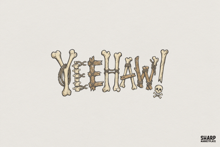 Yeehaw PNG, Western Skeleton Bones Art, Cowboy Aesthetic example image 1