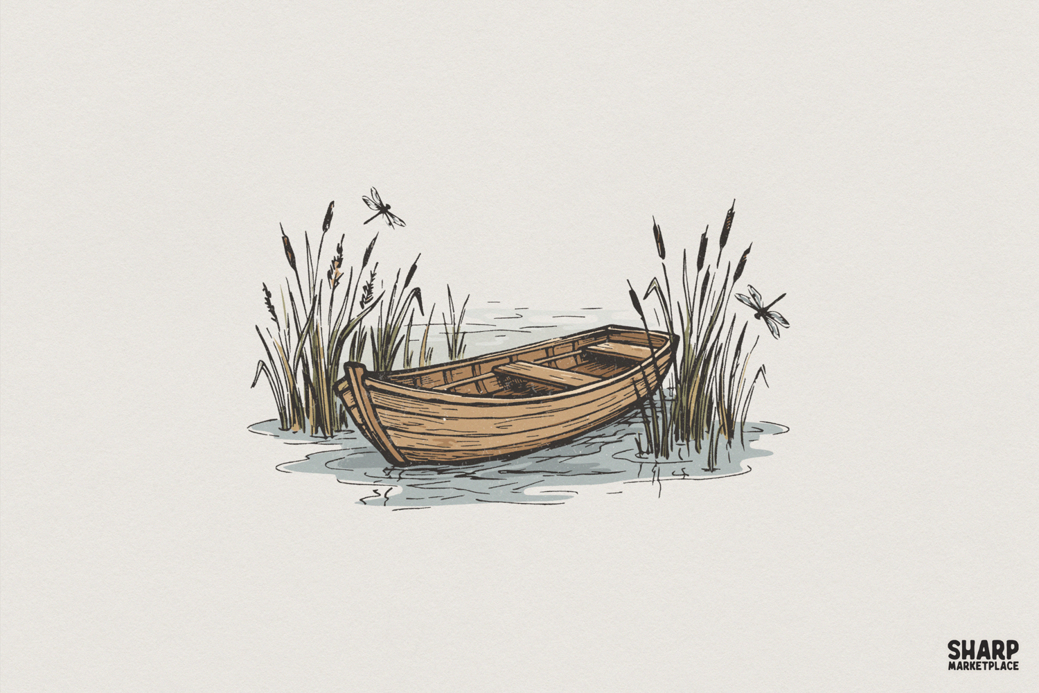 Similar Design Products to Rowboat PNG, Rustic Lake Scene, Vintage Boat Drawing for
