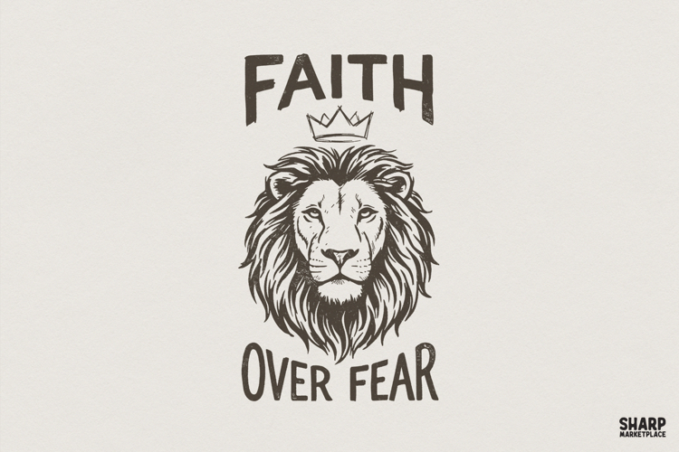 Faith Over Fear PNG, Lion Illustration PNG for Sublimation,