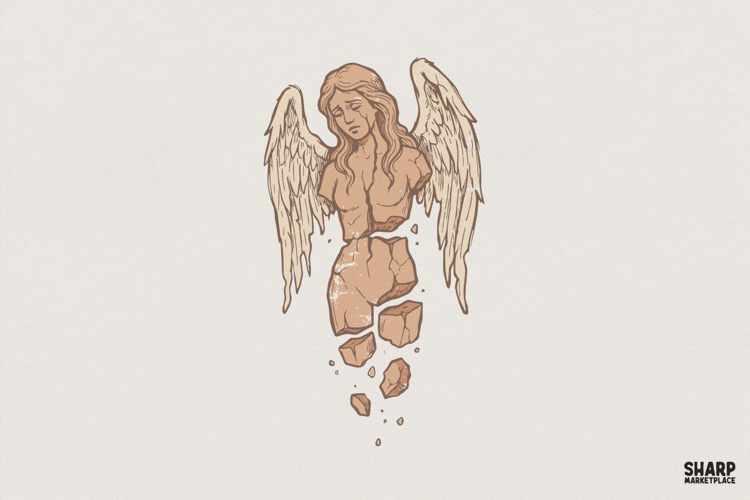 Broken Angel PNG, Fallen Angel Digital Art, Grunge Aesthetic Shirt Design, Tattoo Style PNG, Vintage Angel Art, Printable T-Shirt Graphics