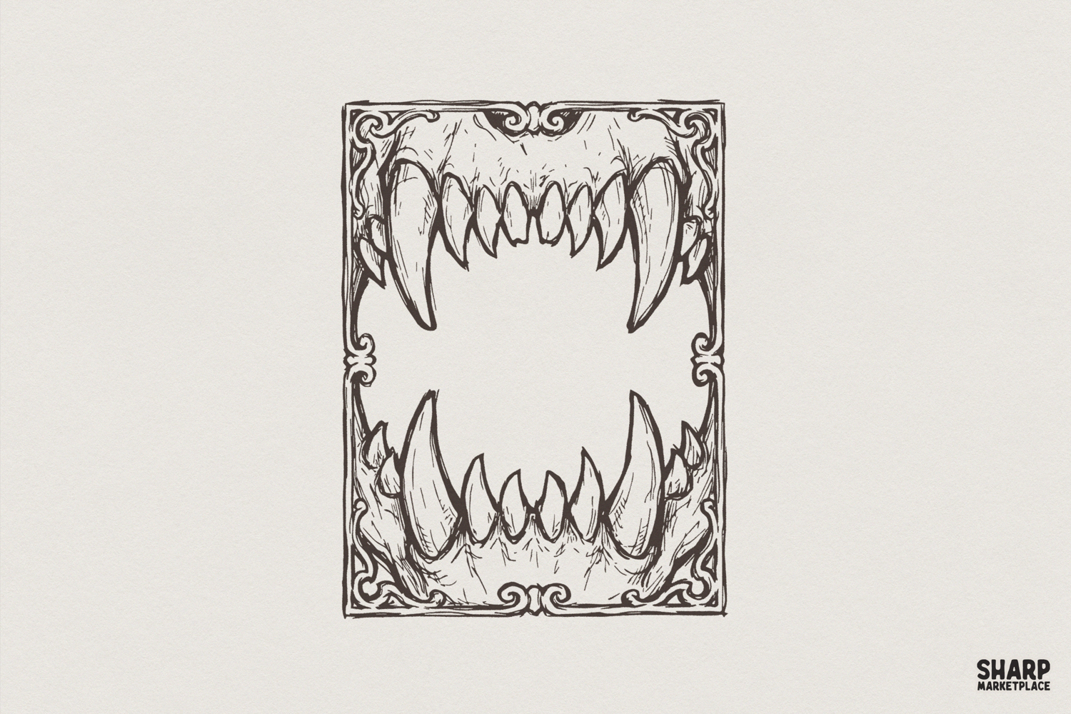 Animal Skull PNG, Gothic Fang Design, Vintage Teeth Art Printable, Horned Beast Frame, Macabre Illustration PNG for Shirt, Unique Artwork