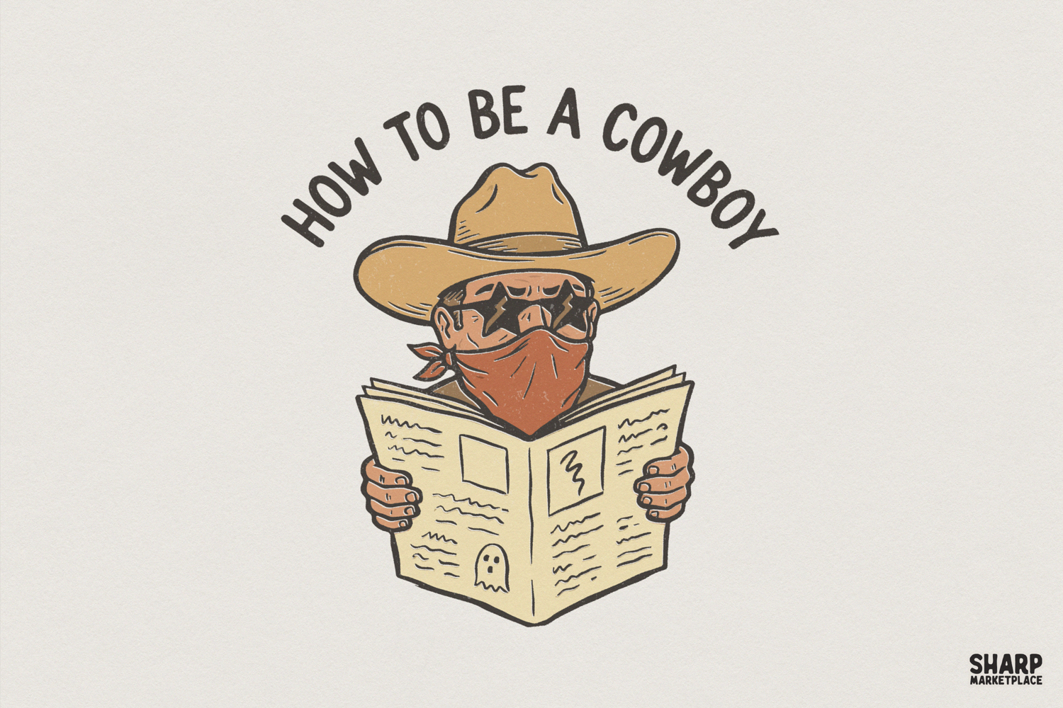 How To Be a Cowboy PNG, Retro Western Shirt PNG, Cowboy Reading Newspaper Design, Funny Bandana Hat Print, Country Music Western Art