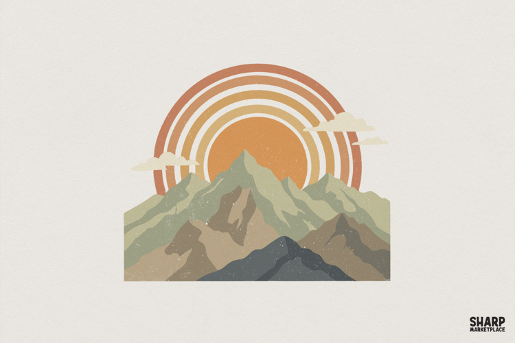 Mountain Sunset PNG, Retro Landscape Art, Nature Scene Printable, Minimalist Mountain PNG, Vintage Sun Poster, Digital Wall Decor Download
