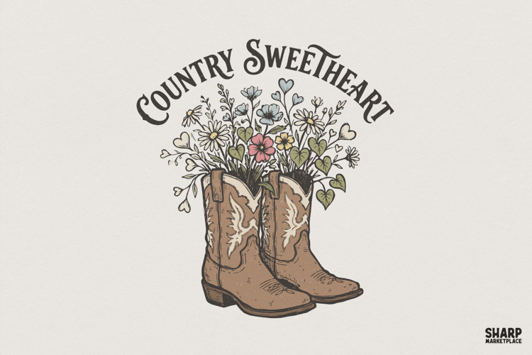 Country Sweetheart PNG, Floral Western Boots Design, Cute Country Girl Art, Wildflower PNG, Boho Digital Download, Cowgirl Shirt Print