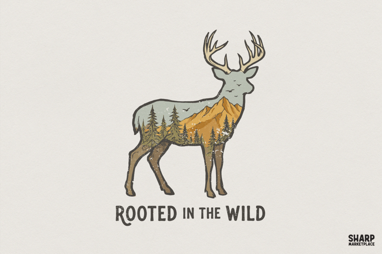 Rooted in the Wild PNG, Deer Mountain Forest Design, Nature Lover PNG Shirt, Outdoor Adventure Gift, Wildlife Scenery, Rustic Animal Art