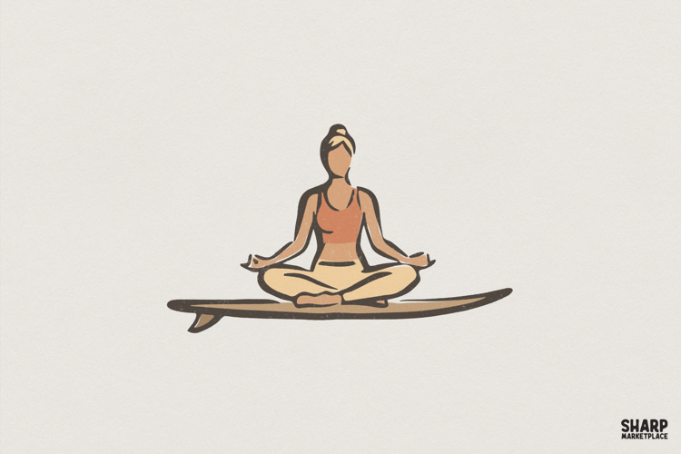 Yoga Surf Girl PNG, Zen Surfer Art Download, Meditation