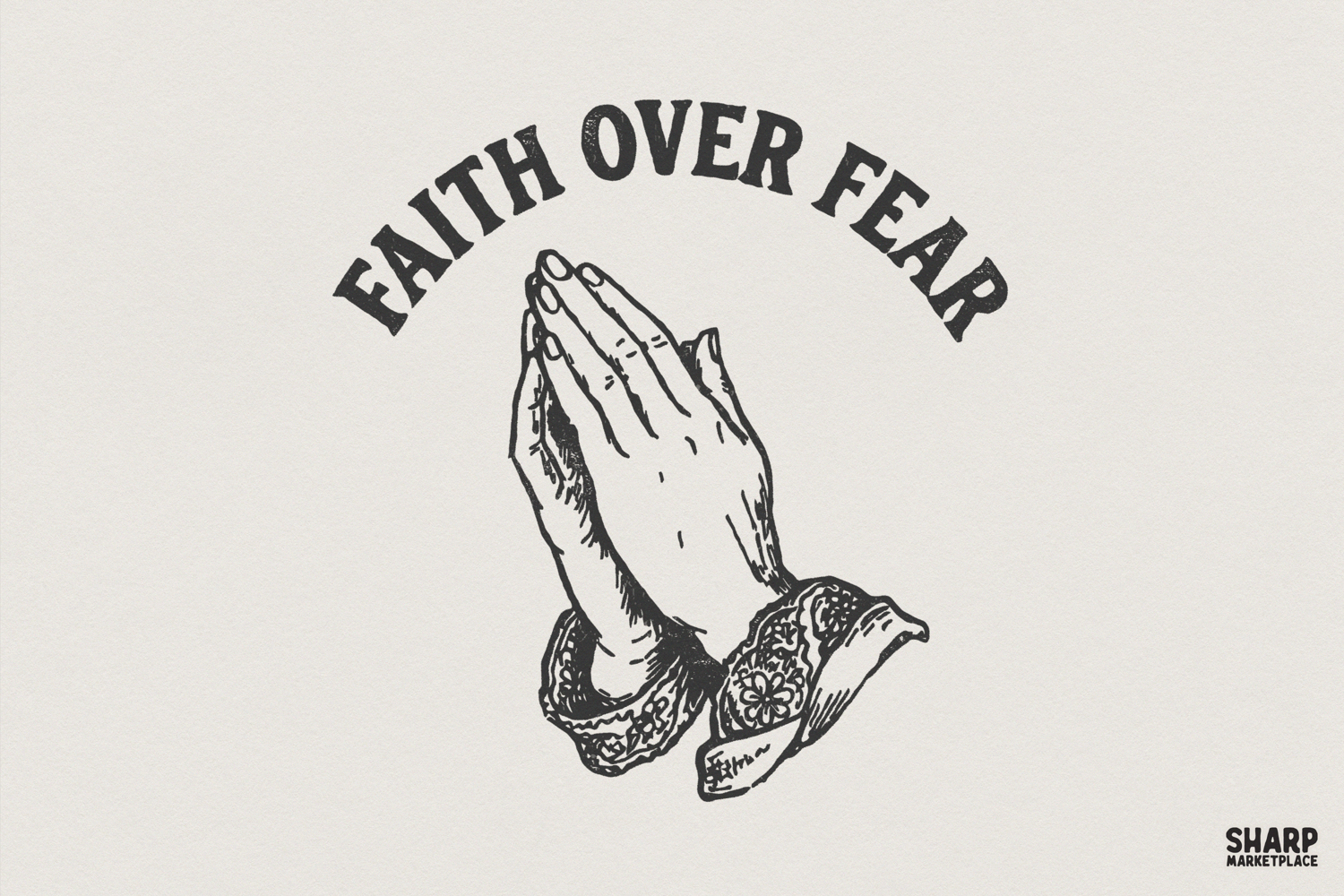 Faith Over Fear PNG, Praying Hands Shirt Design, Religious example image 1