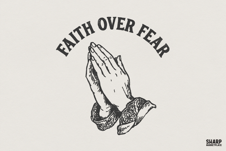 Faith Over Fear PNG, Praying Hands Shirt Design, Religious Quote PNG, Christian Printable, Spiritual Saying, Inspirational T-Shirt Art