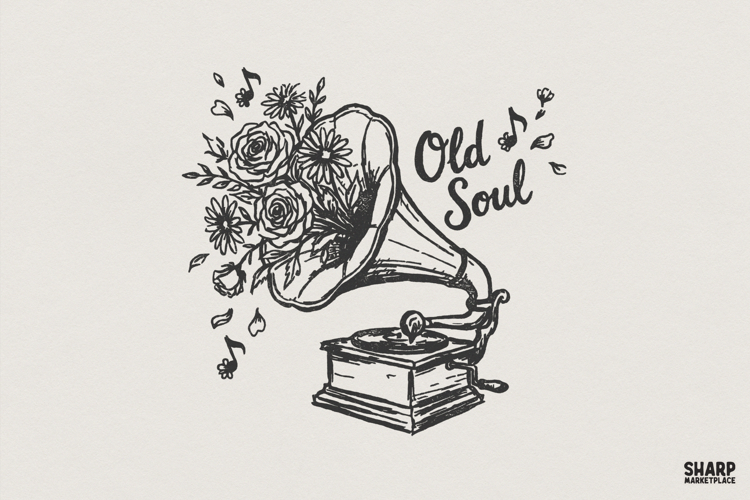 Similar Design Products to Old Soul PNG, Vintage Gramophone Flowers Music Design,