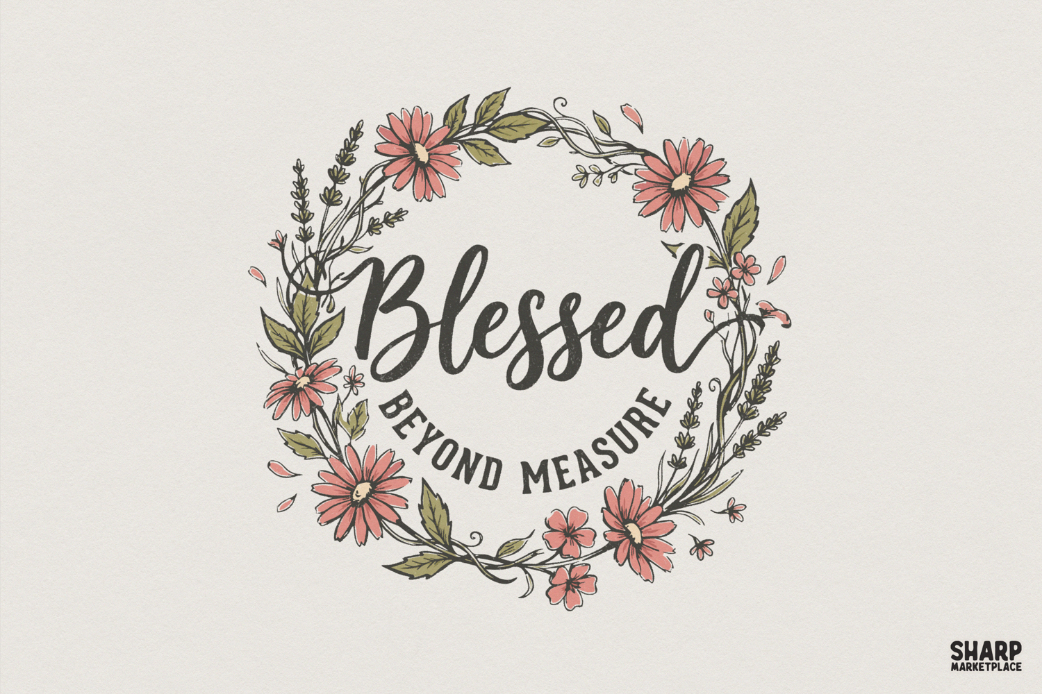 Blessed Beyond Measure PNG, Floral Wreath, Inspirational example image 1