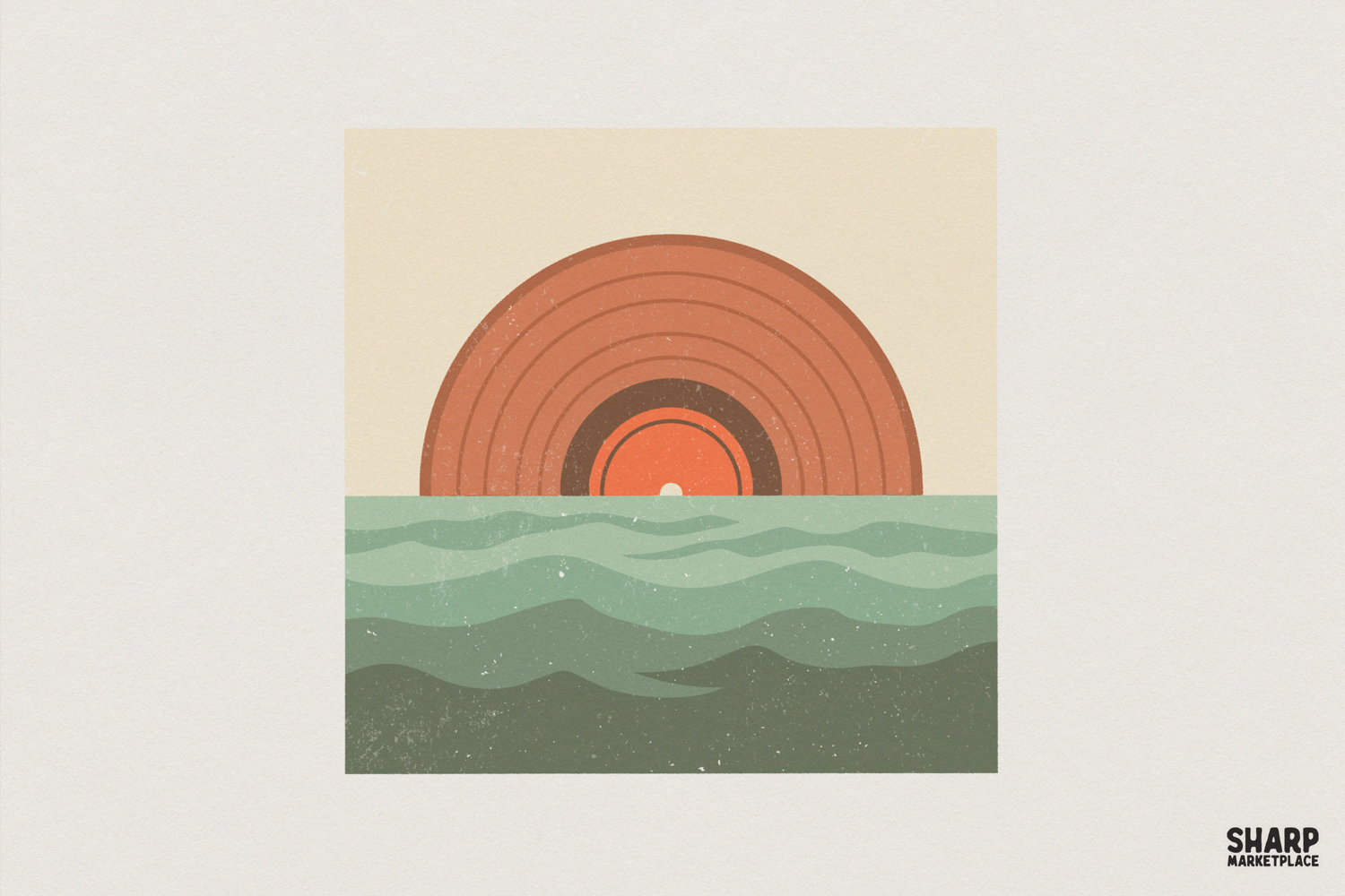 Retro Sunrise Over Waves PNG, Minimalist Sun Print, Vintage Aesthetic Wall Art, Ocean Modern Digital Design, Abstract Beach PNG Download