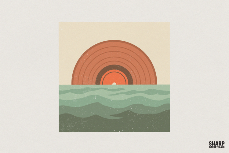 Retro Sunrise Over Waves PNG, Minimalist Sun Print, Vintage
