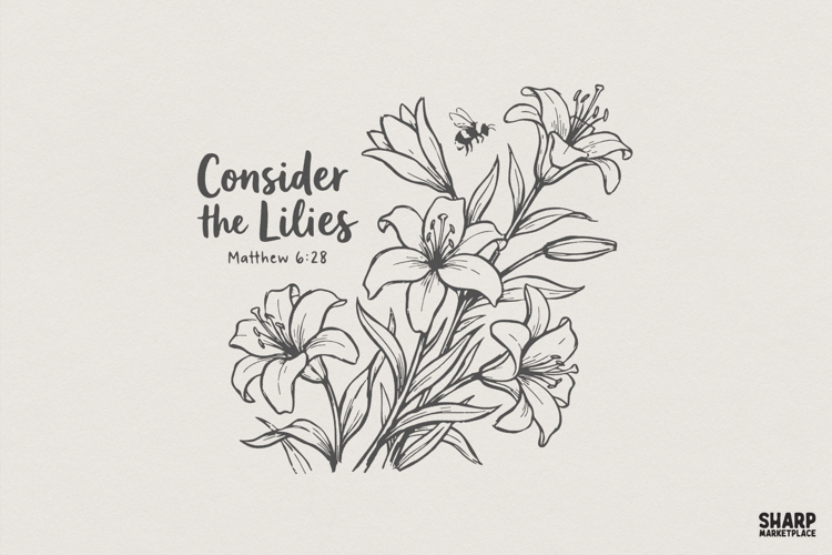 Consider the Lilies PNG, Matthew 6:28 Bible Verse Shirt Design, Christian Floral Art, Religious Inspiration, Flower Digital Print PNG
