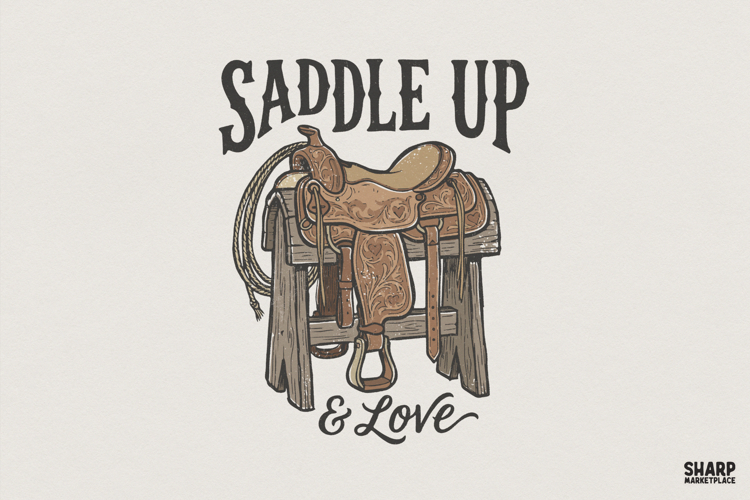 Saddle Up & Love PNG, Western Cowboy Shirt, Country Gift Idea, Rustic Horse Tack Art, Digital Printable for Rodeo Lovers, PNG Design