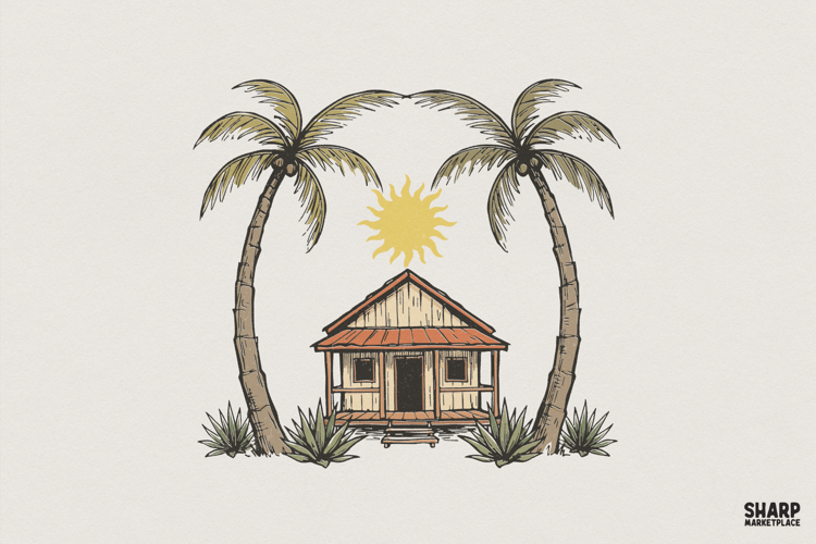 Beach Hut PNG, Palm Tree Clipart, Tropical House Art, Summer Printable, Sunshine Design, Vacation Digital Download, PNG for Shirt, Retro