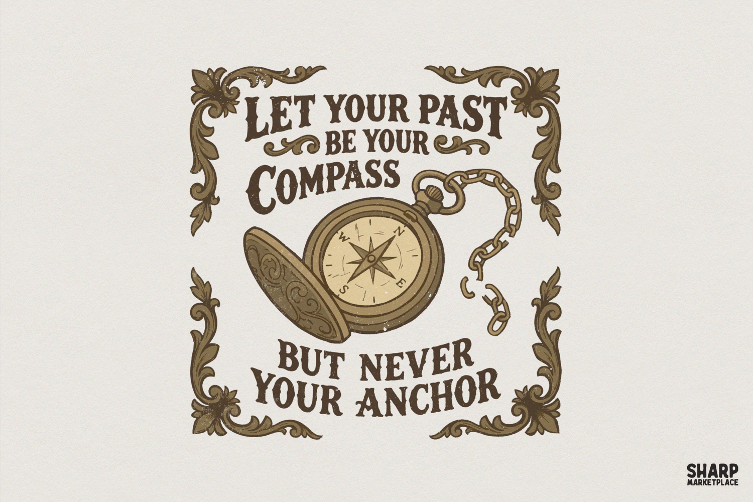 Let Your Past Be Your Compass but Never Your Anchor PNG, Motivational Quote Shirt, Vintage Compass Design, Inspirational Printable PNG