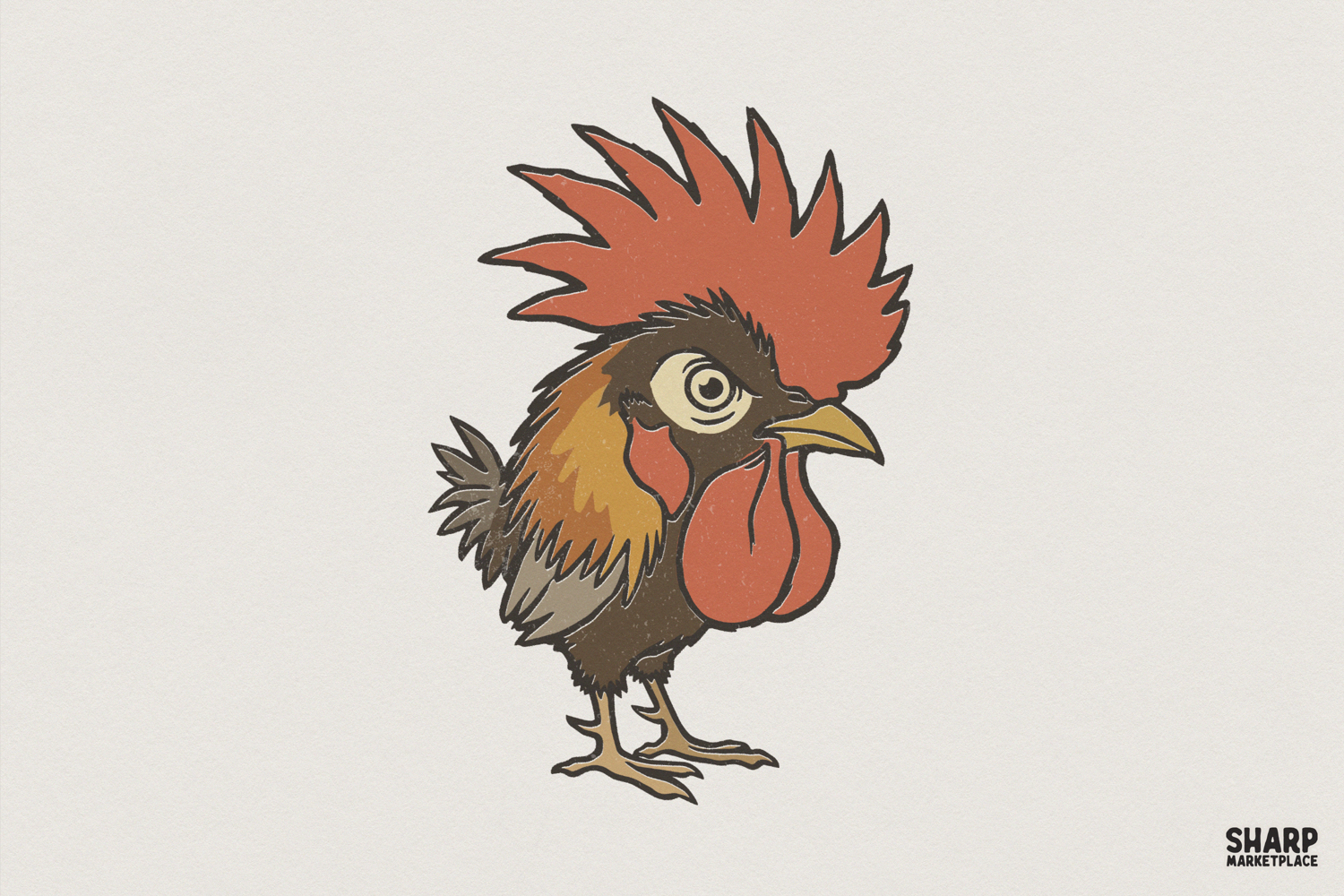 Rooster PNG Design, Funny Chicken Shirt Graphic, Farm Animal Digital Download, Vintage Cartoon Chicken Clipart, Printable Animal Art