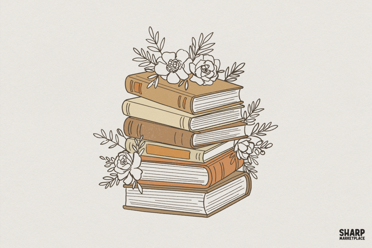 Similar Design Products to Boho Floral Book Stack PNG, Vintage Books Digital Design,