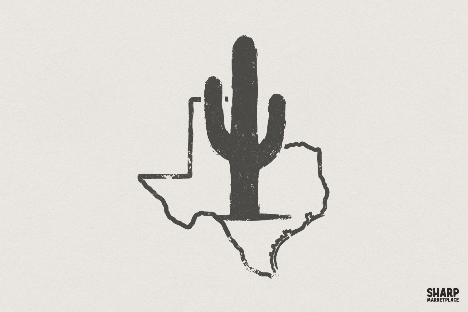 Texas Cactus PNG Design, Minimalist Western Texas Digital Download, Rustic Desert State Outline Graphic, Printable T-Shirt File