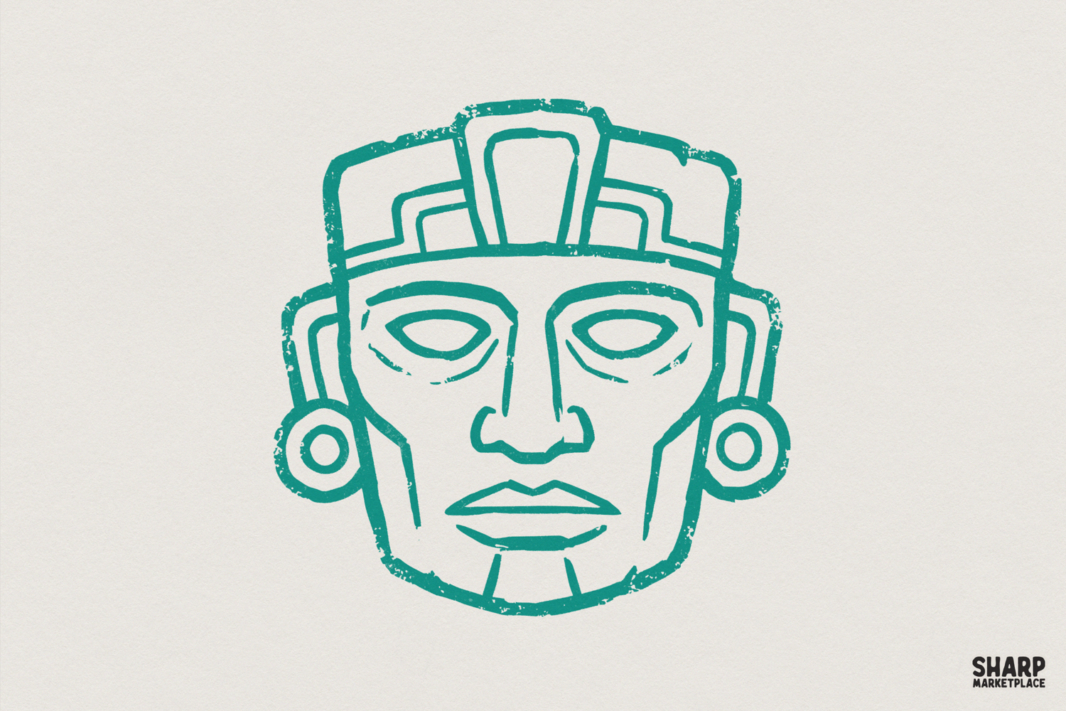 Aztec Face PNG Design, Tribal Mask Digital Download, Mayan