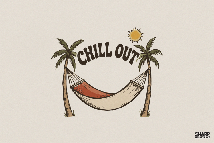 Chill Out PNG, Retro Summer Hammock Design, Palm Tree Beach Vibes Graphic, Relaxation Digital Download, Printable Shirt Design File