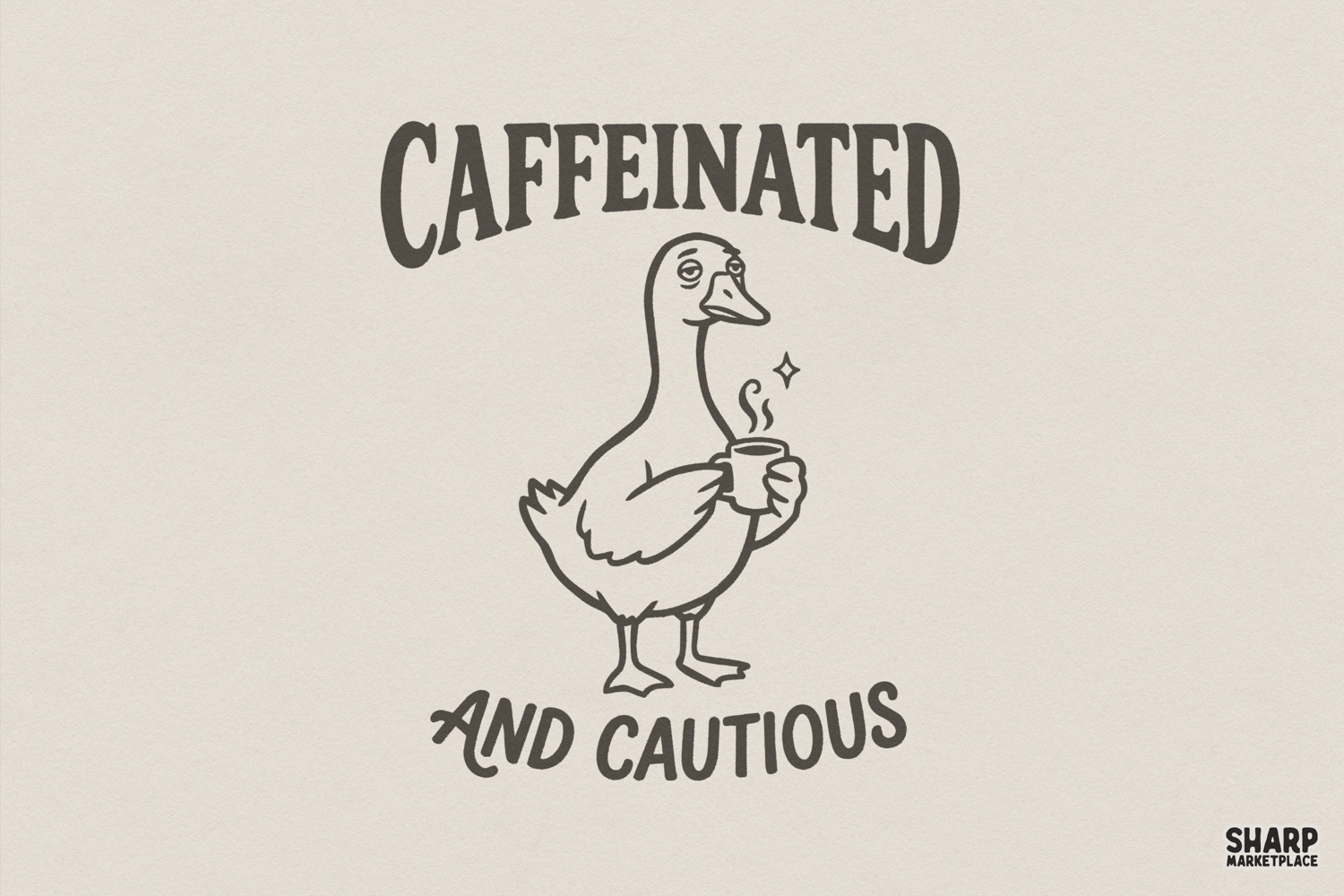Caffeinated And Cautious PNG, Funny Duck Coffee Digital Download, Cartoon Animal Shirt Design, Printable Graphic for Sublimation File