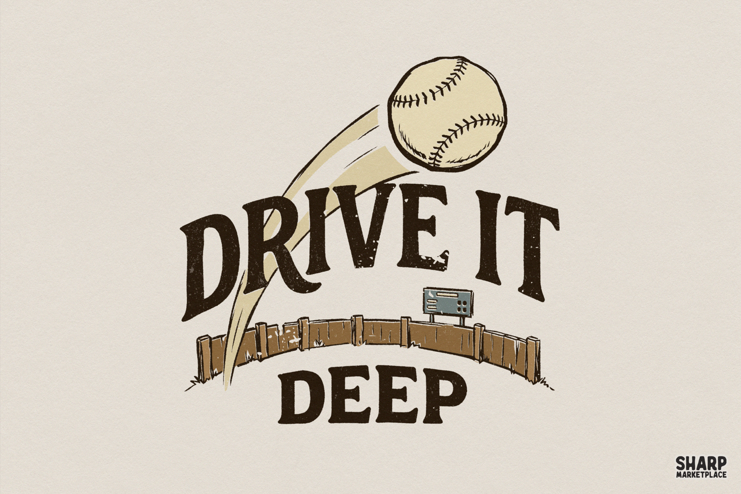 Drive It Deep Baseball PNG, Retro Vintage Shirt Design, Printable Digital Download, Home Run Sports Graphic File for T-Shirt Making
