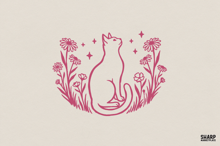 Floral Png Cat Png Flower Shirt Design Cat Shirt Design Boho Cat Wildflower Png Whimsical Cat Png Cottagecore Cat Nature Cat Design Starry Cat