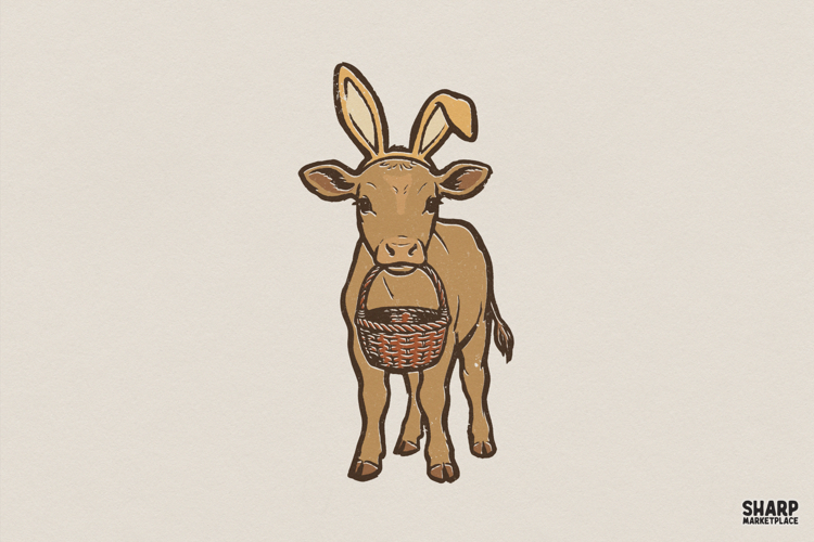 Easter Cow PNG Design, Bunny Ears Cow Digital Download, Farm Animal Basket Graphic, Vintage Printable File for T-Shirt, Instant Download