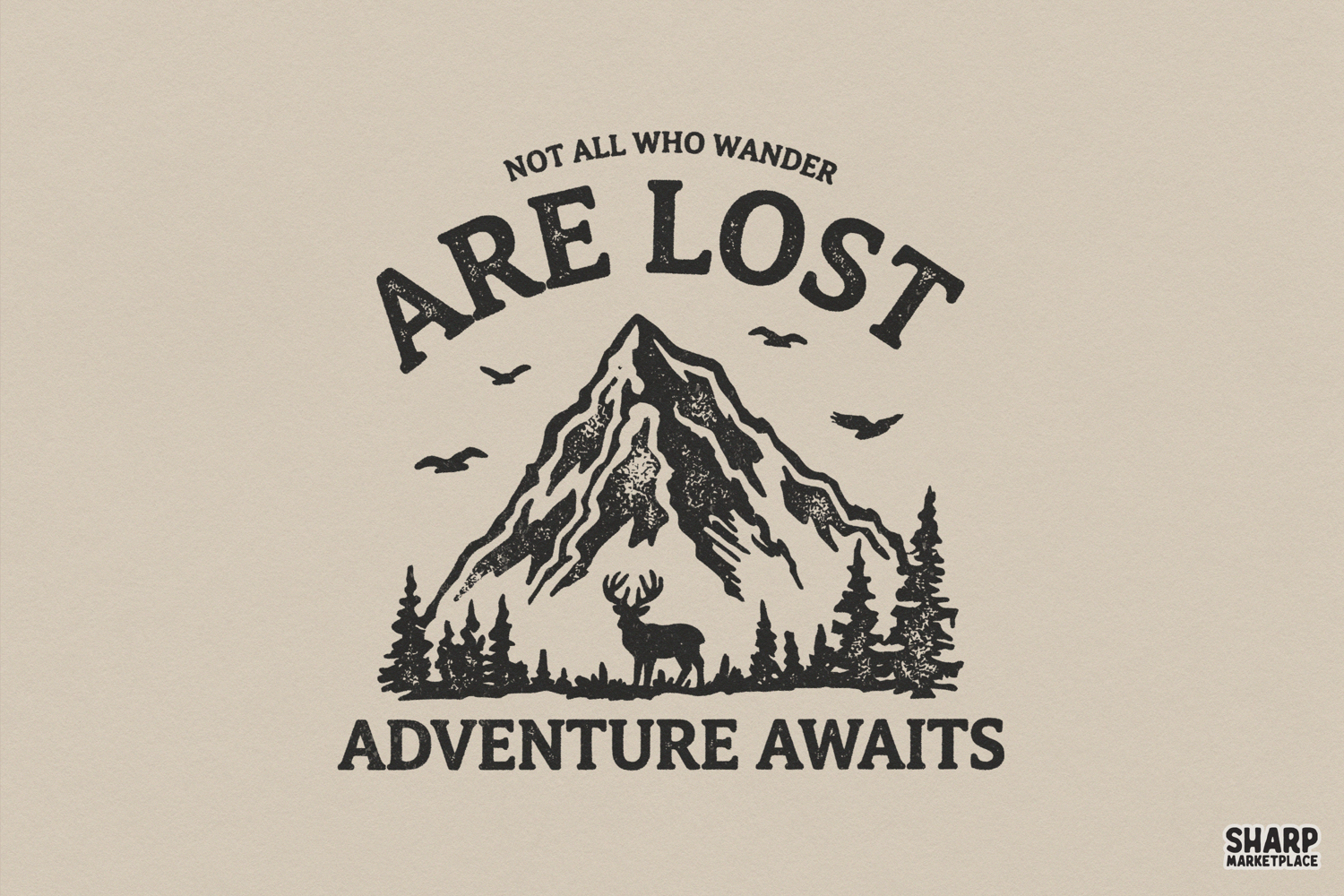 Not All Who Wander Are Lost Adventure Awaits, Summer PNG, Western PNG, Trendy PNG, Mountain Deer Wilderness Printable Art Download