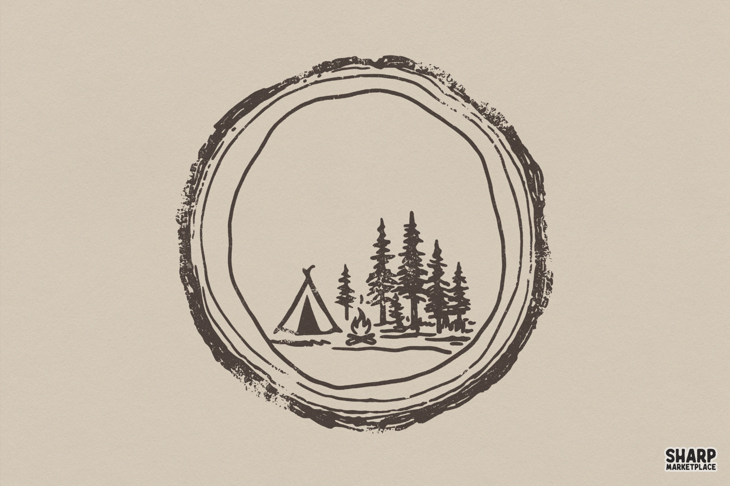 Camping Forest Emblem PNG Designs, Summer PNG, Trendy PNG, Vintage Tent and Campfire Badge, Outdoors Adventure Printable Wall Decor