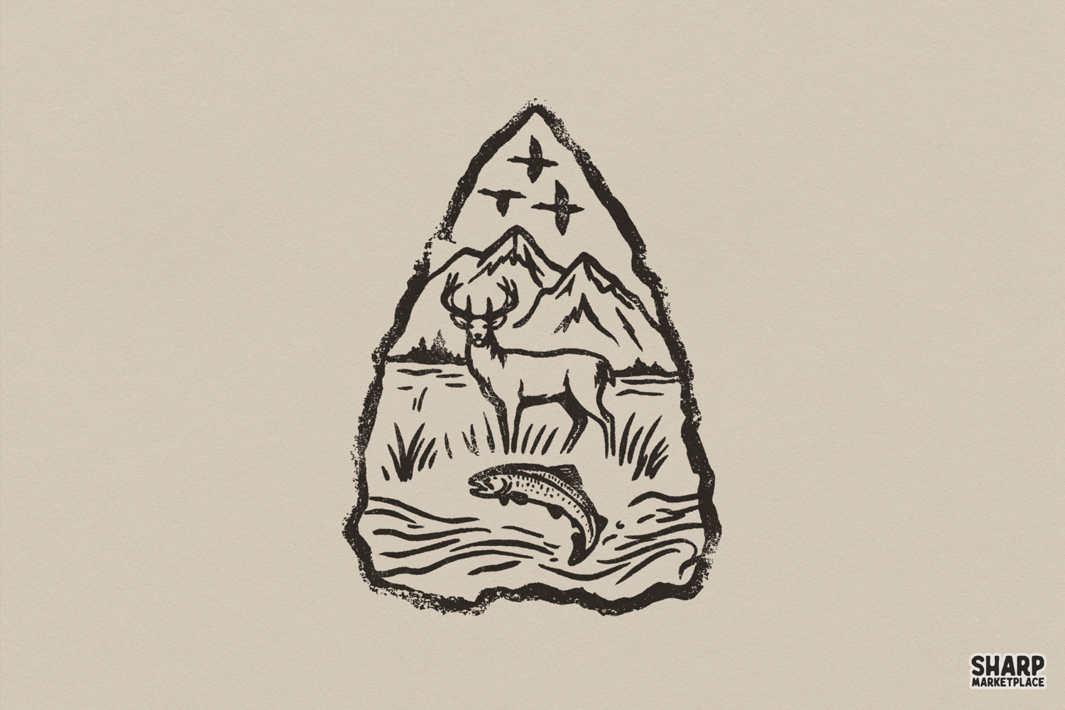 Arrowhead Deer And Trout, Summer Western Trendy Outdoor Art, Shirt PNG, Mountain Wildlife Hunting Fishing Print Printable Download