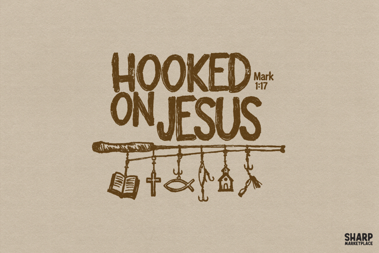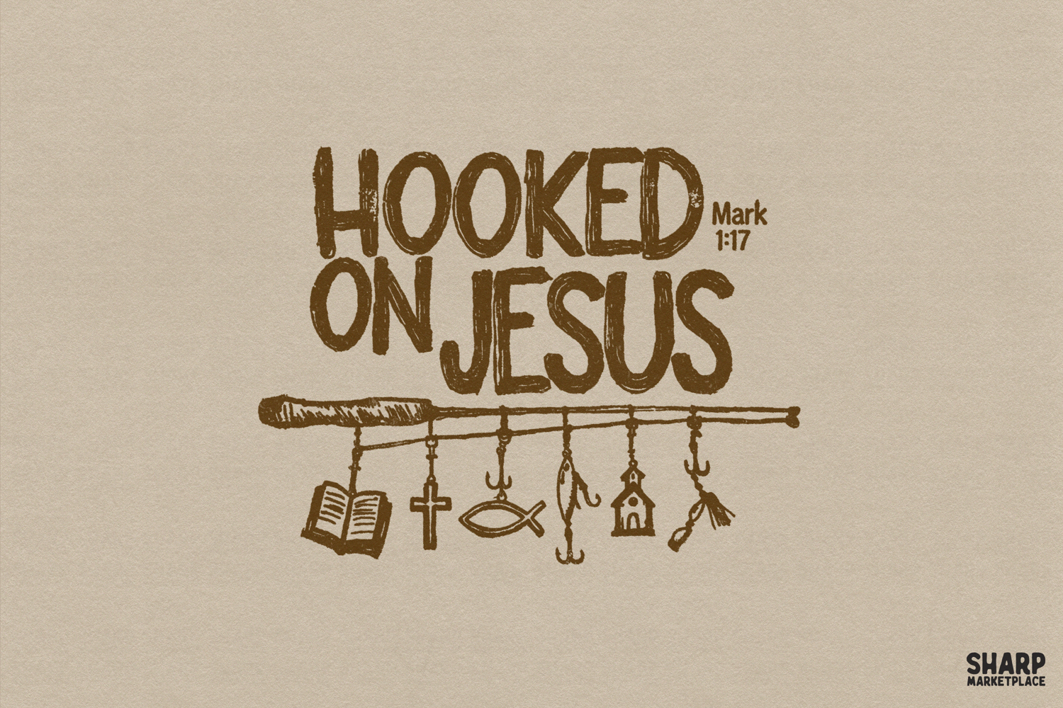 Hooked On Jesus Mark 1:17 Christian Fishing Design, Christian PNG, Jesus PNG, Fishing PNG For Faith Based Apparel Prints Digital Download