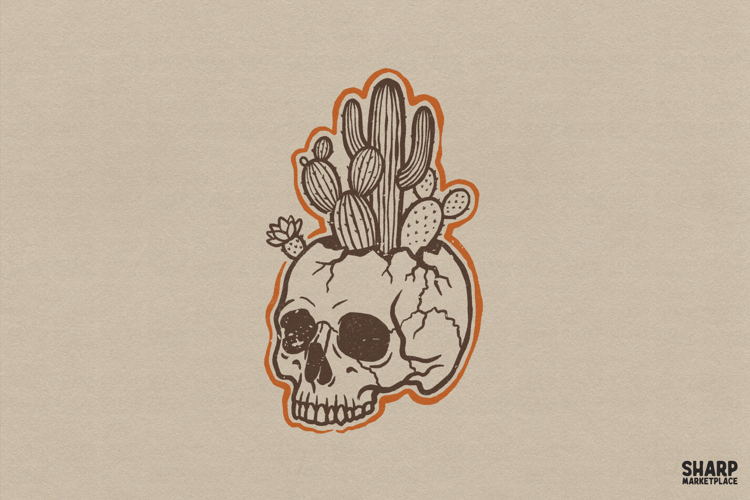 Similar Design Products to Cactus Skull Sticker Style PNG, Western Desert Graphic,