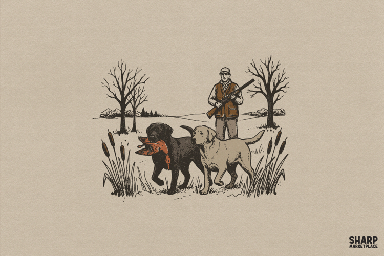 Similar Design Products to Vintage Duck Hunter With Loyal Retrievers Artwork, PNG