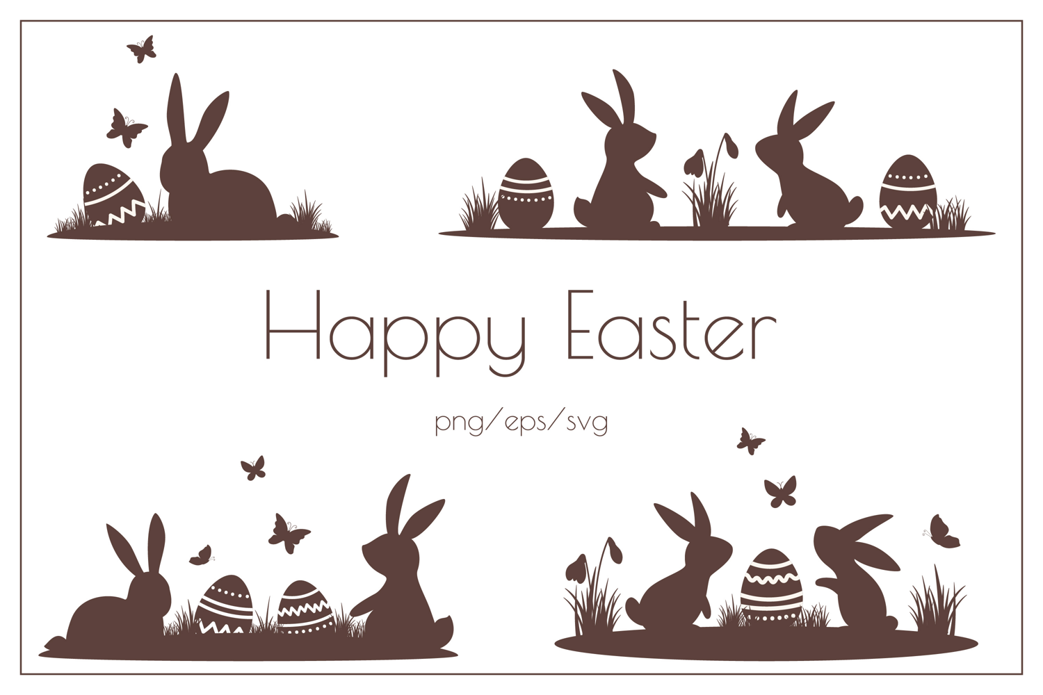 Happy Easter clip art with Easter bunny and eggs silhouette