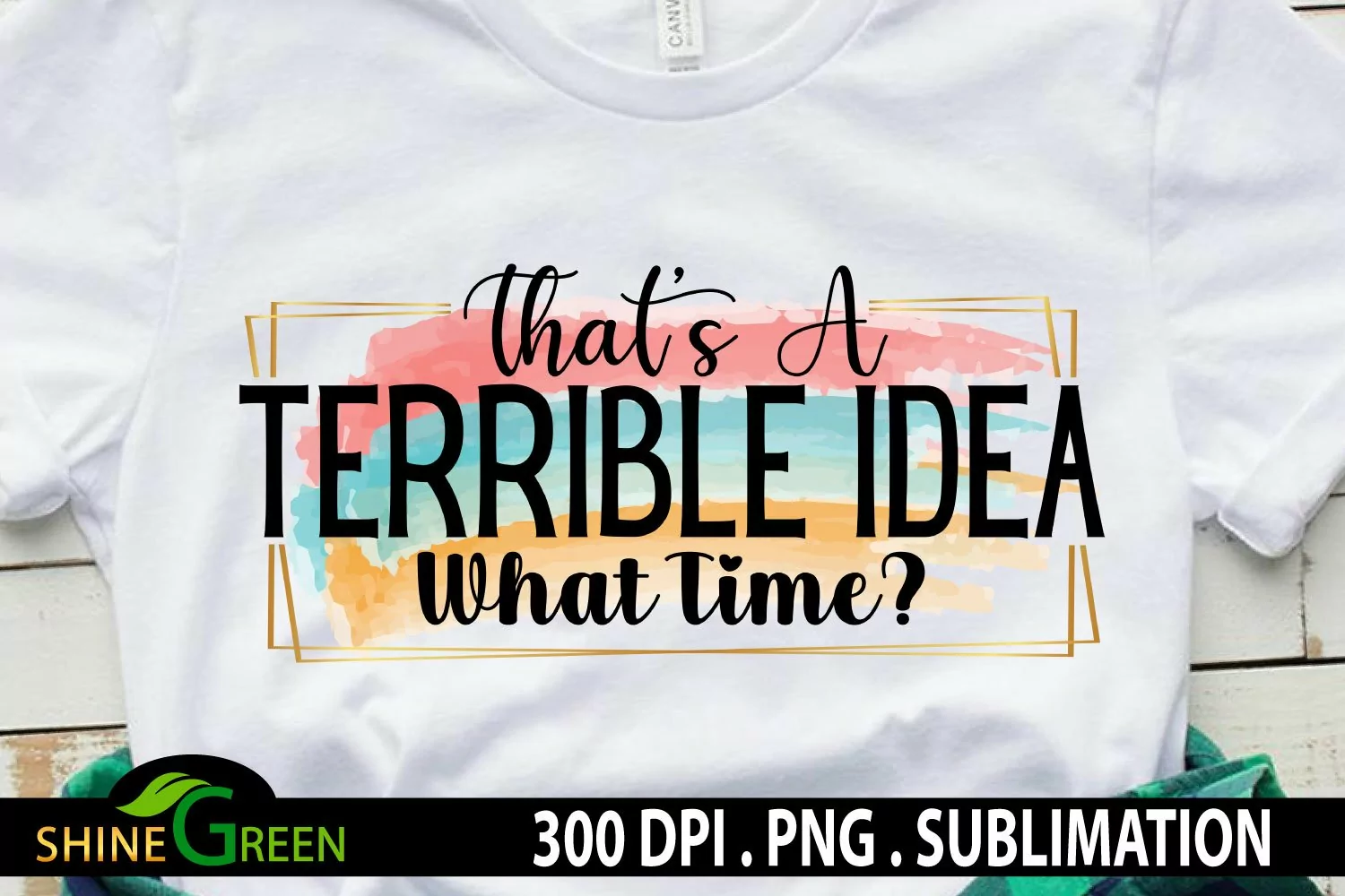 Sublimation Sarcastic Quote That's a Terrible Idea What Time? Funny PNG Watercolor T-Shirt Design