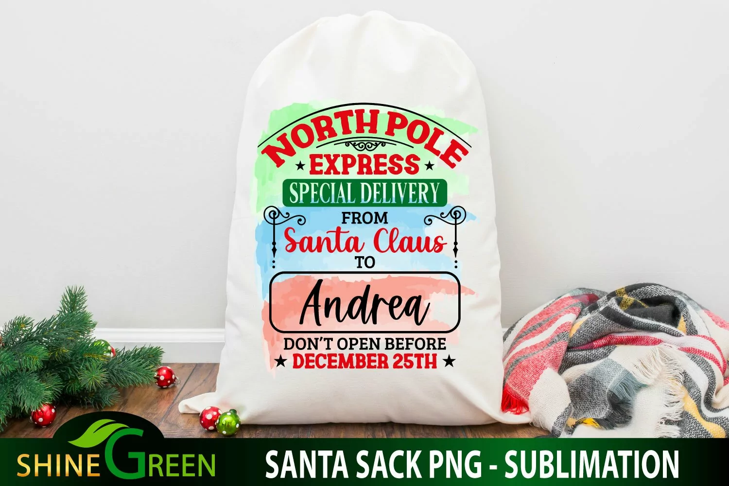 Santa Sack Sublimation Watercolor PNG for Christmas Santa Bag