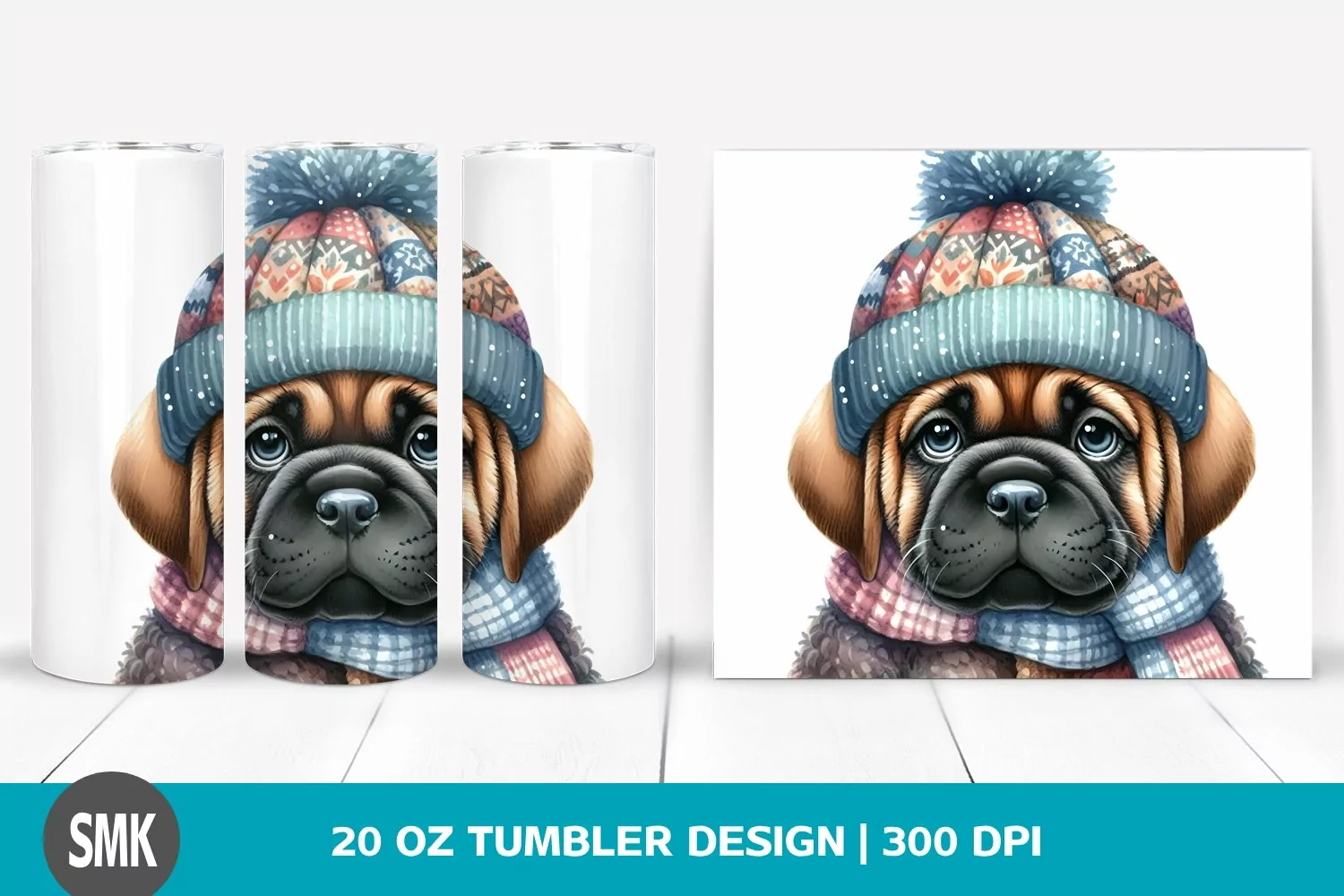 Watercolor Baby Mastiff, Winter | 20 oz Tumbler example image 1