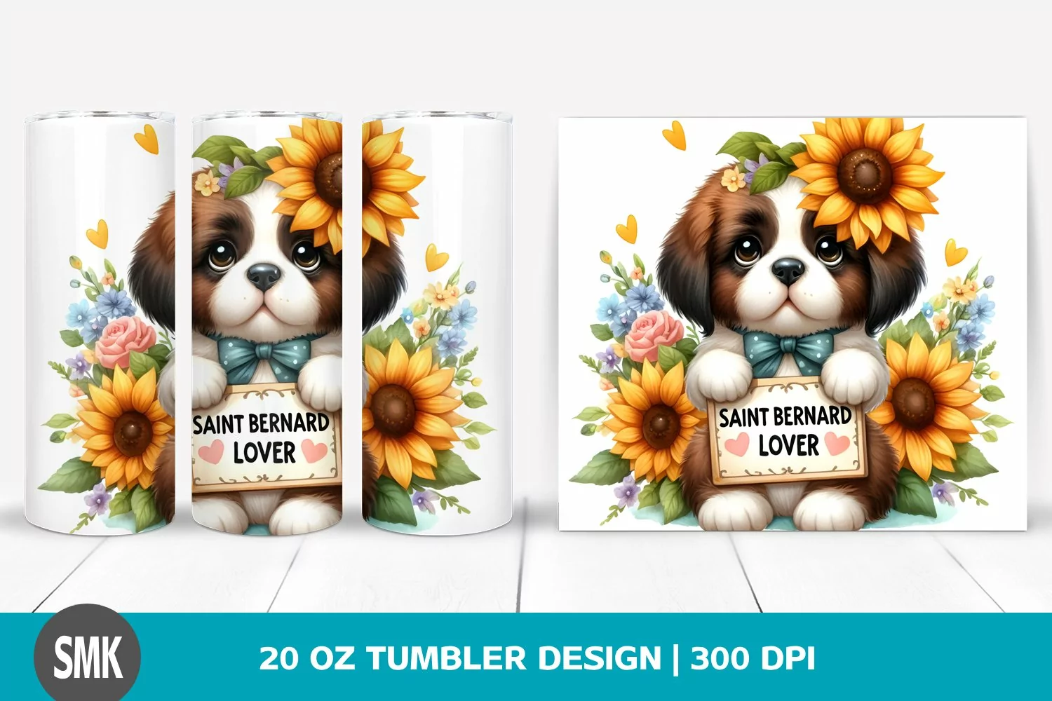 Similar Design Products to Watercolor Baby Saint Bernard, Sunflower | 20 oz Tumbler