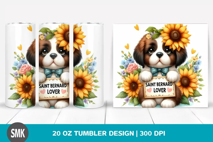 Baby Flowers Clipart Png Sublimation Tumbler Whitebackground Centered Sunflower Saintbernard